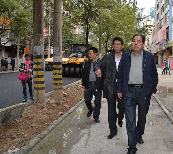 下圖為:咸陽(yáng)市城建局韓保鋒局長(zhǎng)、咸陽(yáng)市市政工程管理處楊偉生主任、咸陽(yáng)市建筑安裝工程總公司趙拓總經(jīng)理等在樂(lè)育路施工現(xiàn)場(chǎng)檢查、指導(dǎo)工作。