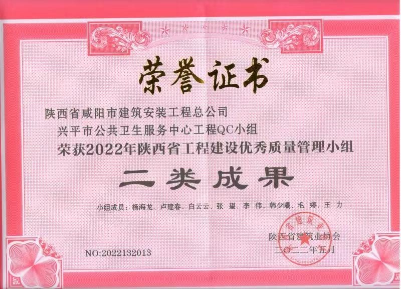 上一篇:2024年度咸陽(yáng)市建設(shè)工程“秦陽(yáng)杯”榮譽(yù)證書